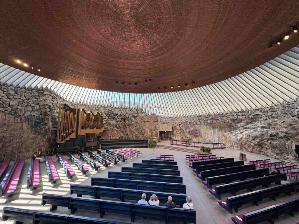 1969年に竣工。ティモ&トゥオモ・スオマライネン兄弟が設計した岩の教会。