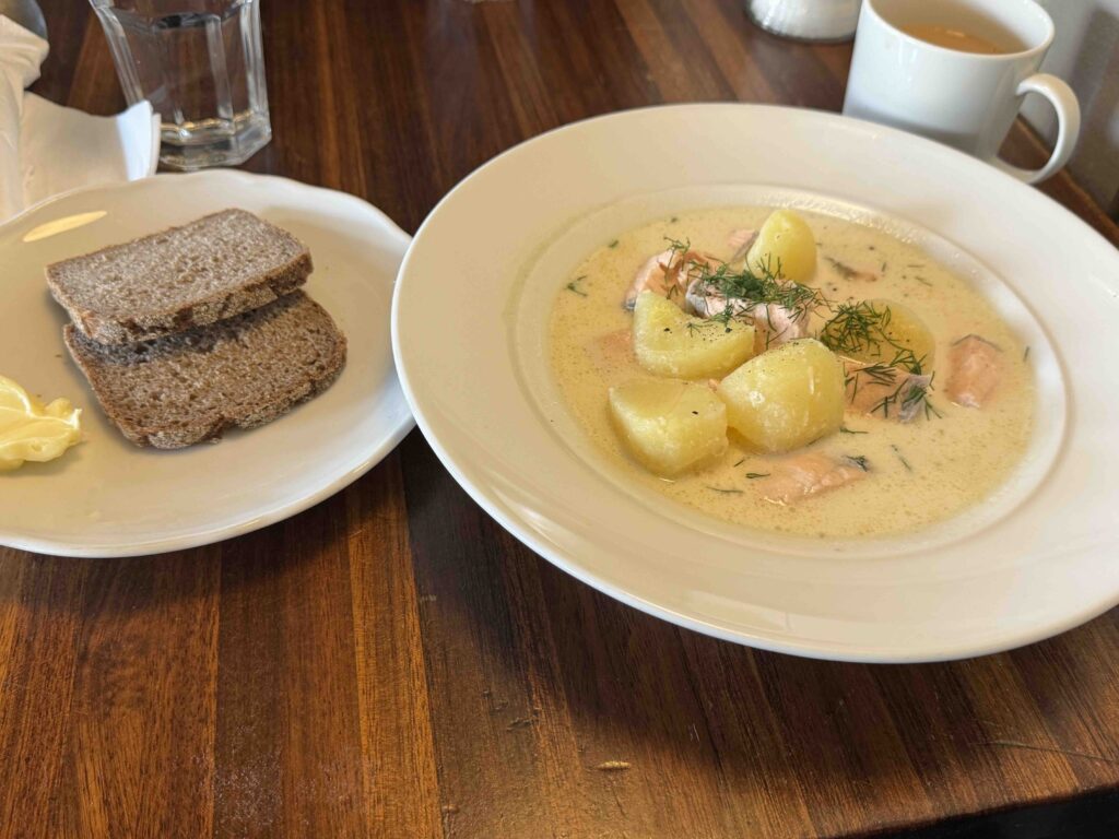 朝食や軽食にシナモンロール(コルヴァプースティ)、昼食や夕食にサーモンスープ(ロヒケイット)はいかがでしょうか?
