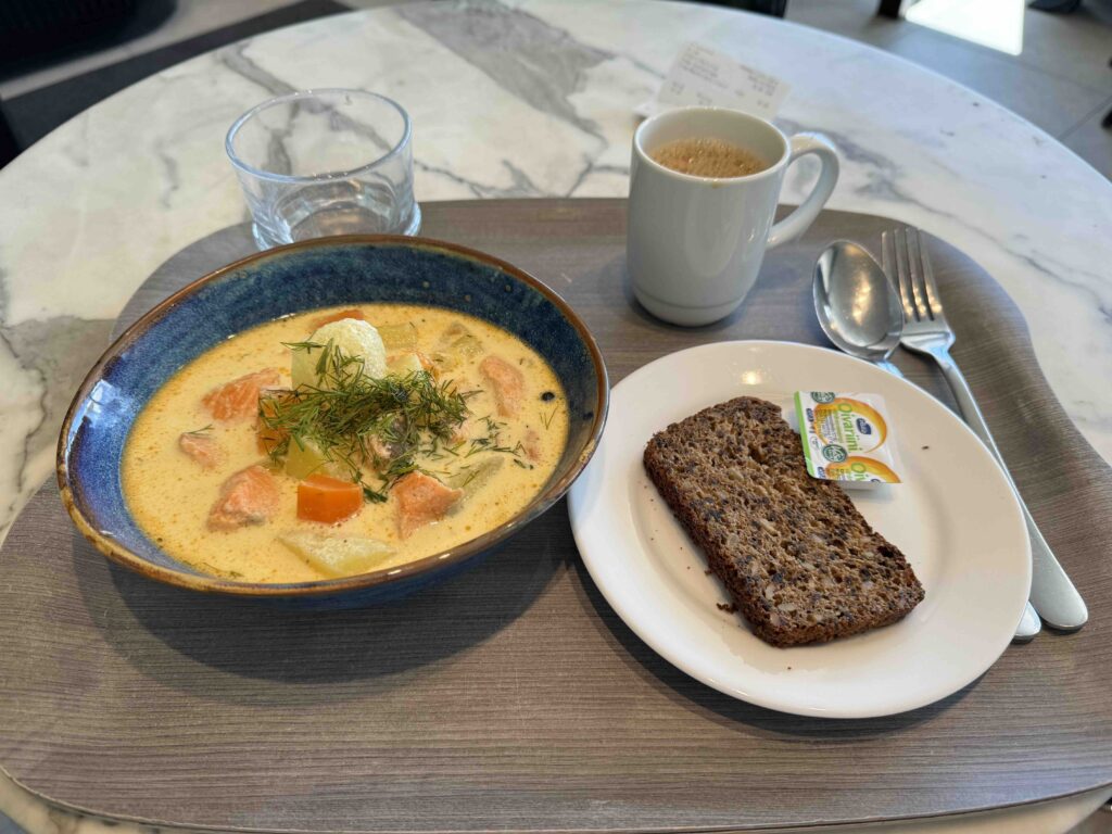こちらのカフェにて、サーモンスープを注文する方が多いようです。